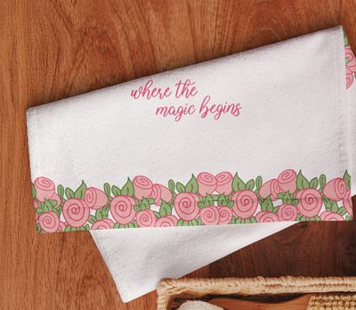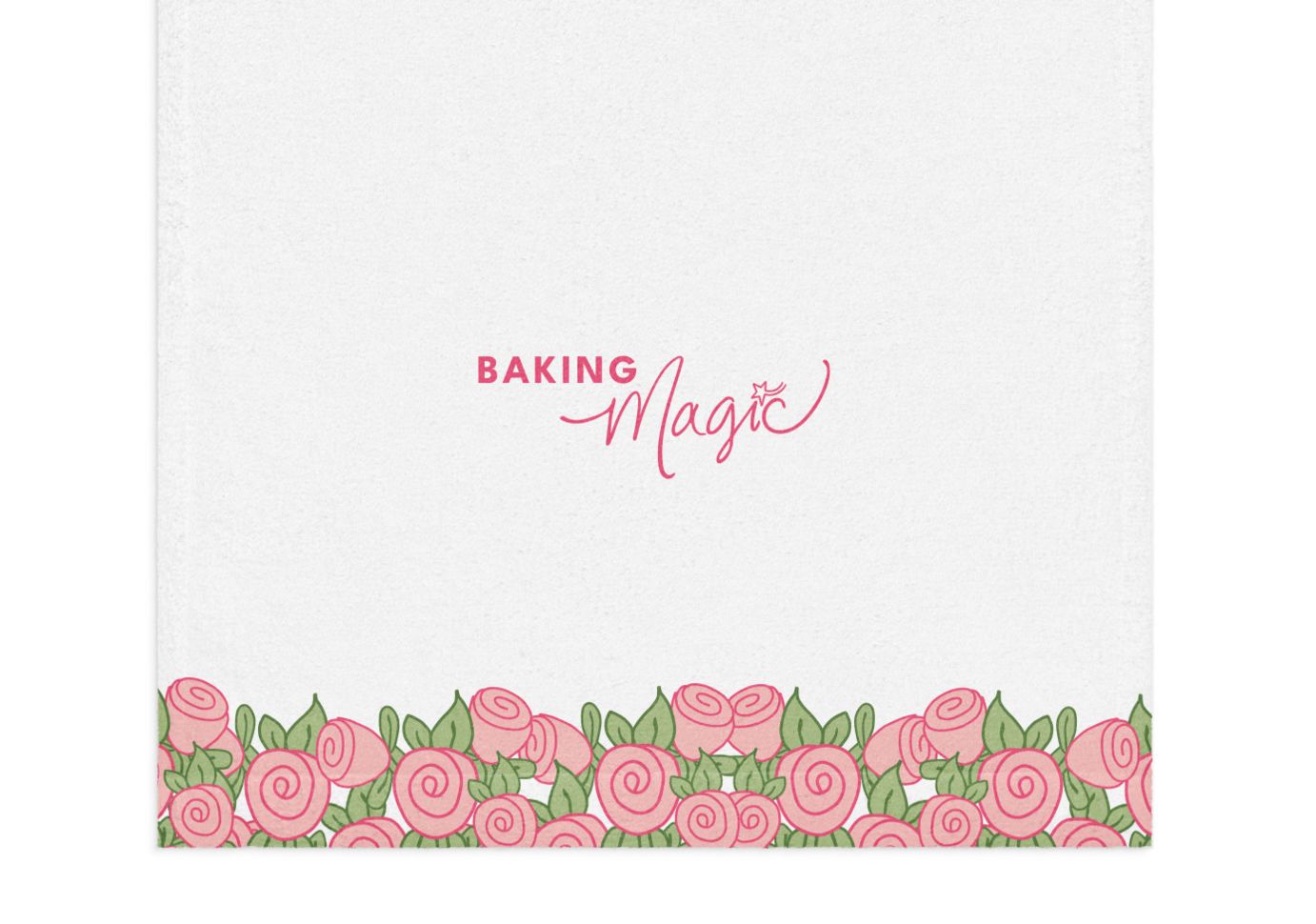 We all know the "baking magic" happens in the kitchen. Enjoy this tea towel, made of a smooth polyester front and soft cotton back for absorbency.